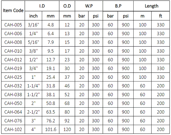 Textile Reinforced Air Hose Temperature: -40℃(-104℉)to 70℃(+158℉)