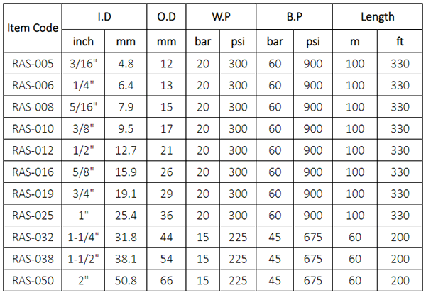 Reinforcement:1ply or 2ply high tensile polyester thread braiding